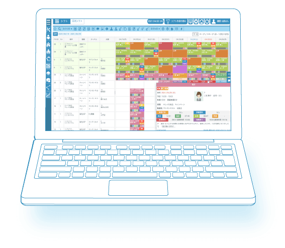 販売/セールスプロモーション業界に従事する週5日勤務型販売員や土日スポット販売員、営業/巡回ラウンダー・イベント/キャンペーンスタッフのスケジュール作成に特化した機能が充実!