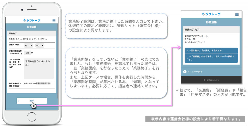 勤怠連絡:業務終了